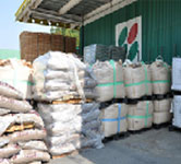 工場に、バーミキュライト、ピートモス、ココナッツファイバーなど用土の原料が入ってきました。