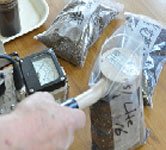 入荷した原料からサンプルを取り、Ph(酸度)、EC(濃度)、放射線量を検定します。