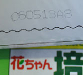 袋詰めが終わったら、一袋一袋に、製造年月日を含むロットナンバーを印字します。