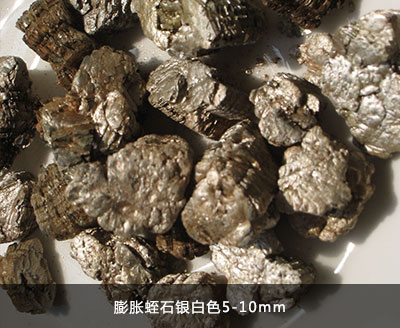 バーミキュライト原石を高温(800~1000℃)の焼成炉の中を通過させると、結晶層内に含まれる水分が瞬間的に水蒸気となって原石の層間剥離を起こし、アコーディオン状に急膨張して容積が10数倍にもなります。これが「焼成バーミキュライト」です。